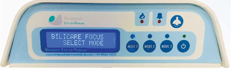Three modes of Photo therapy treatment incorporated which provides different wavelength from a distance of 18 inches to treat neonatal jaundice as per the serum bilirubin level of the newborn, hence no need to reduce the distance between light source & baby bassinet. This enhances efficacy of Infant care takers.