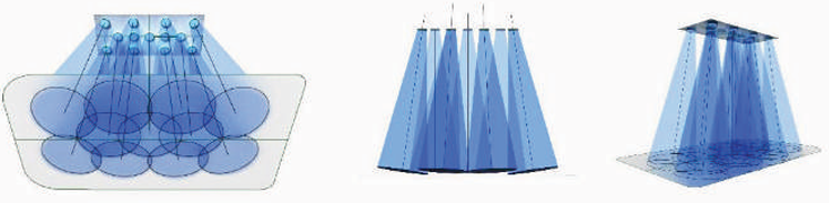 LED fixed in different THREE D angles to focus the blue light. Special 30-degree lens used to focus the blue light on baby treatment area.